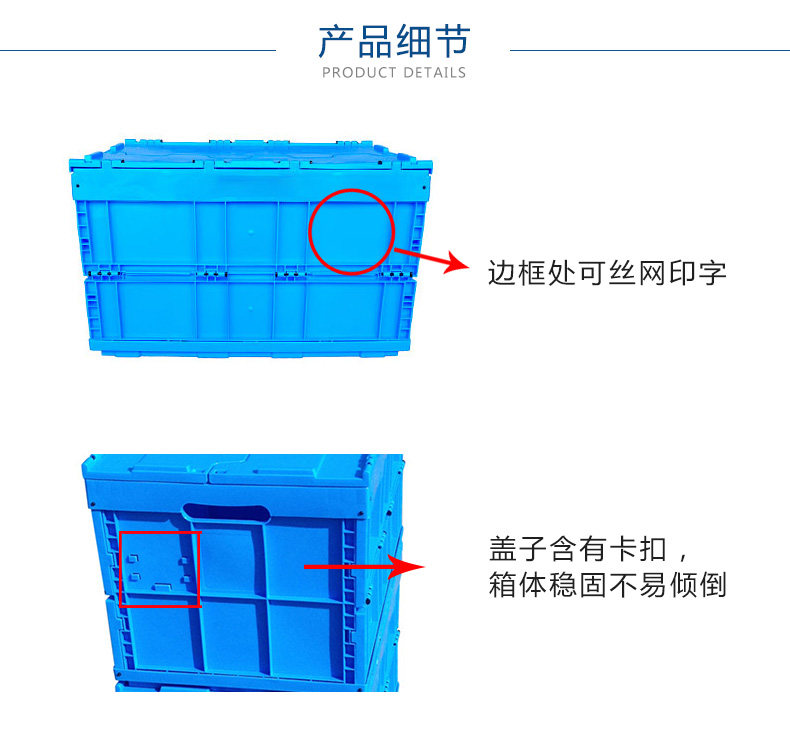 折疊箱帶蓋子物流箱內(nèi)倒式透明藍(lán)色周轉(zhuǎn)箱塑料箱600400