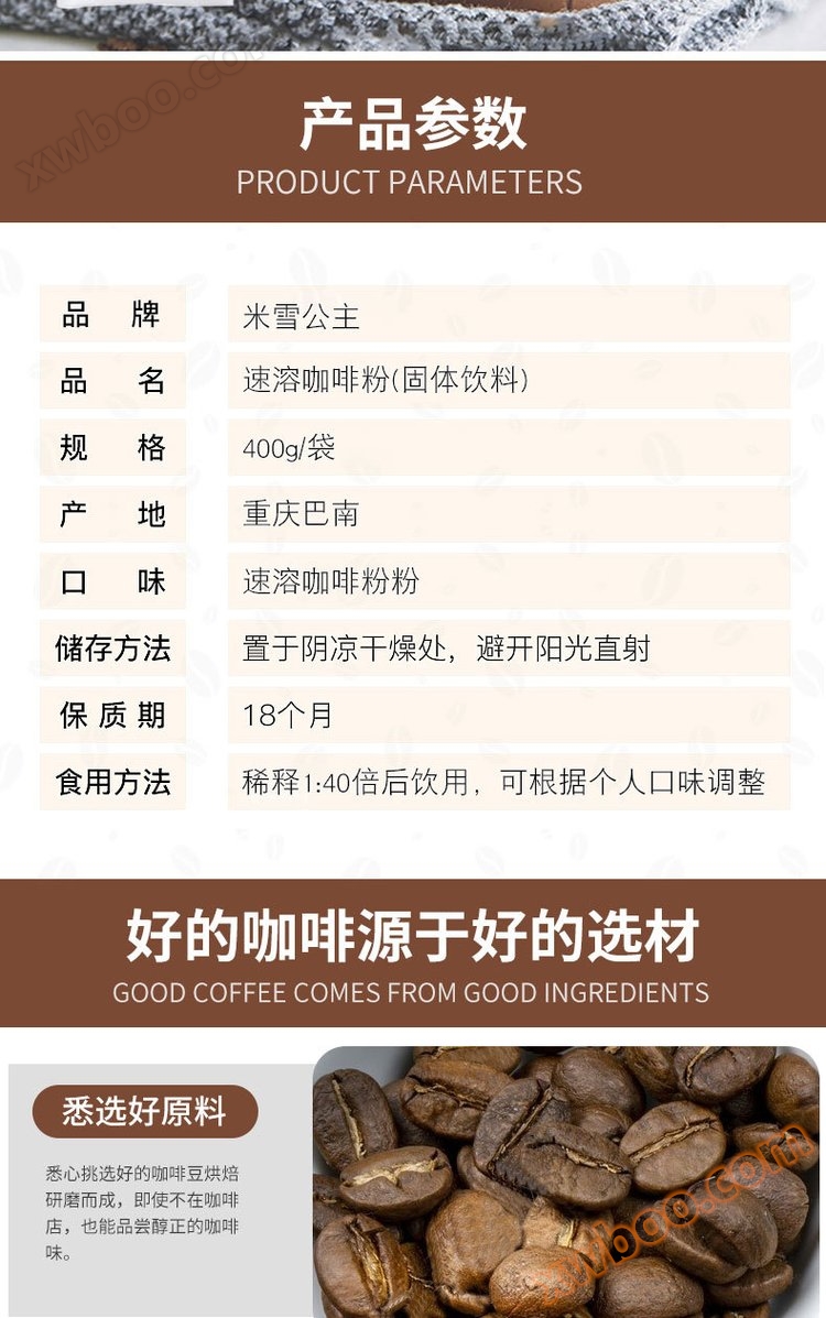 當前位置:重慶米雪食品有限公司>>食品原料/輔料>>食品原料>> 米雪公主 咖啡粉400g 彌勒奶茶原料商用原料