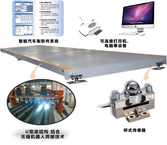 1.自由組合的U型梁結構秤體,10mm/12mm/14mm臺面鋼板厚度可選。