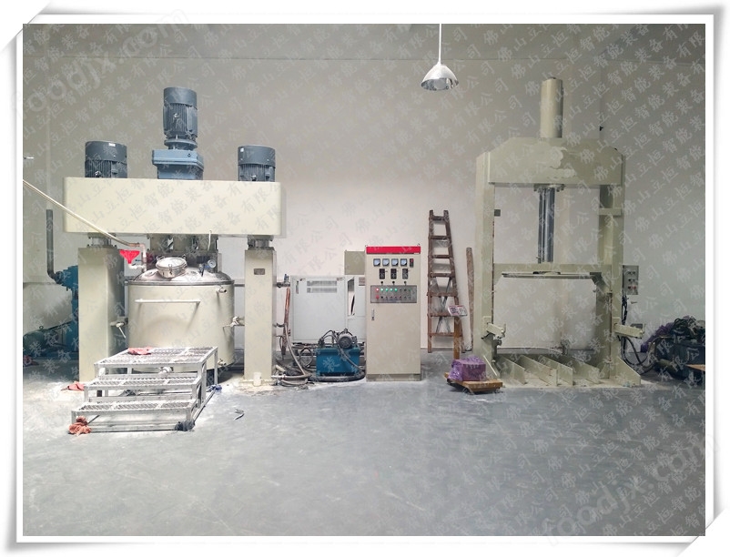 整套設備:含分散機、液壓出料機、兩個料缸、真空系統、控制系統